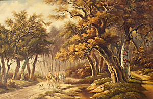 Copy from the picture of Cornelis Verdonck /Holland/, “Landscape with hunters and dogs” 60,5/90 cm, sertificate