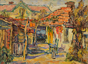 Dora Kancheva “The yard”, circa 1961, oil on panel, 36/51 cm.