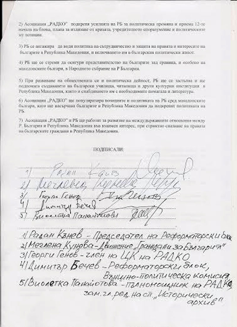 Така, след близо пет - месечни преговори, този обнадеждаващ договор стана действителност. Реформаторският блок обещава да защитава всички права на македонските българи и най-вече : тяхната КУЛТУРНА ИДЕНТИЧНОСТ.
