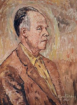 Златю Бояджиев, Портрет на Гео Мирчев, фирмописеца от Пловдив, в чието ателие се изграждат Бараците, м. б. пл., 1960